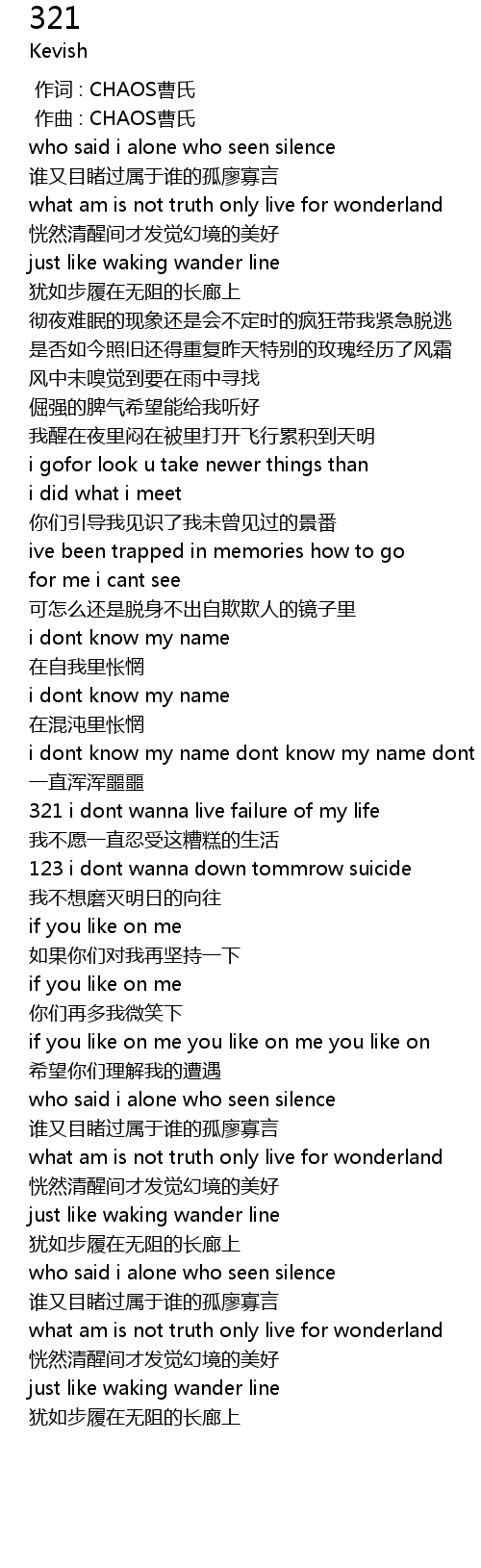 | [01:21.918] | 123 i dont wanna down tommrow suicide |
