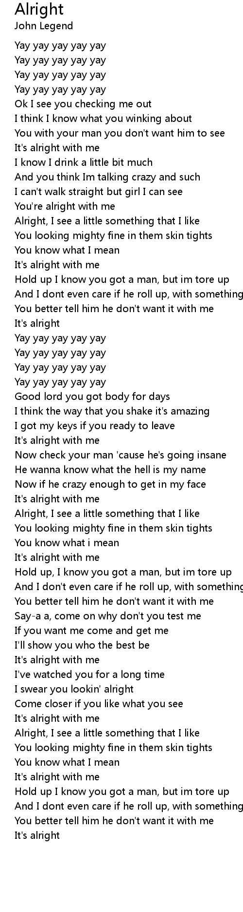 I swear you lookin' alright |