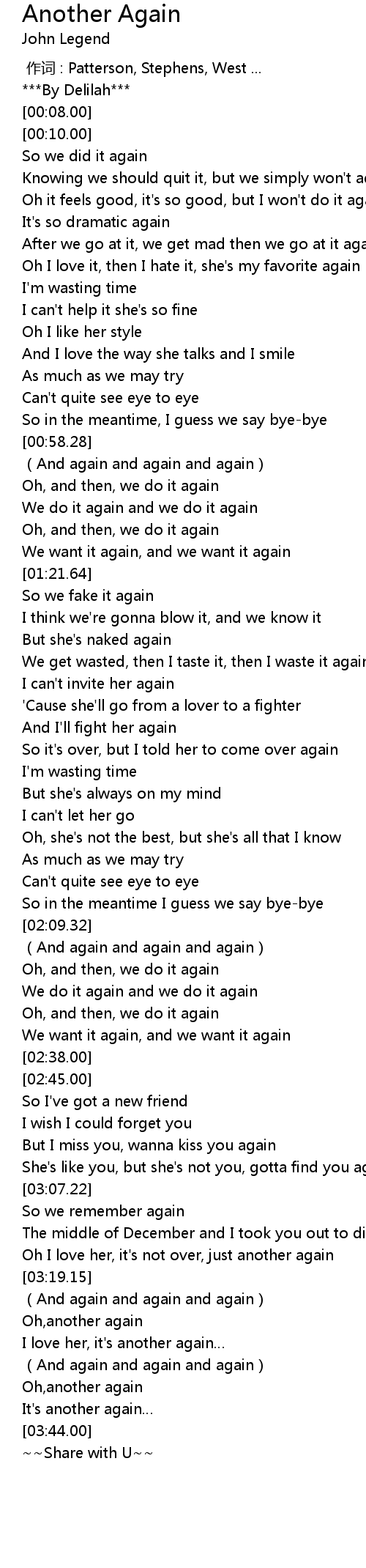 | [03:02.30] | She' s like you, but she' s not you, gotta find you again |