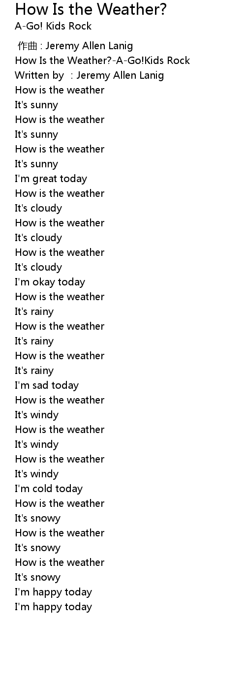 | [00:00.287] | How Is the Weather?-A-Go!Kids Rock |