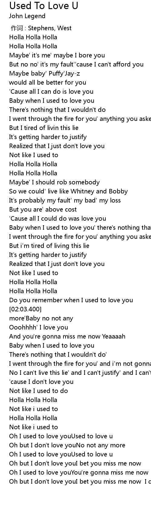 | [03:05.289] | Oh I used to love youUsed to love u |