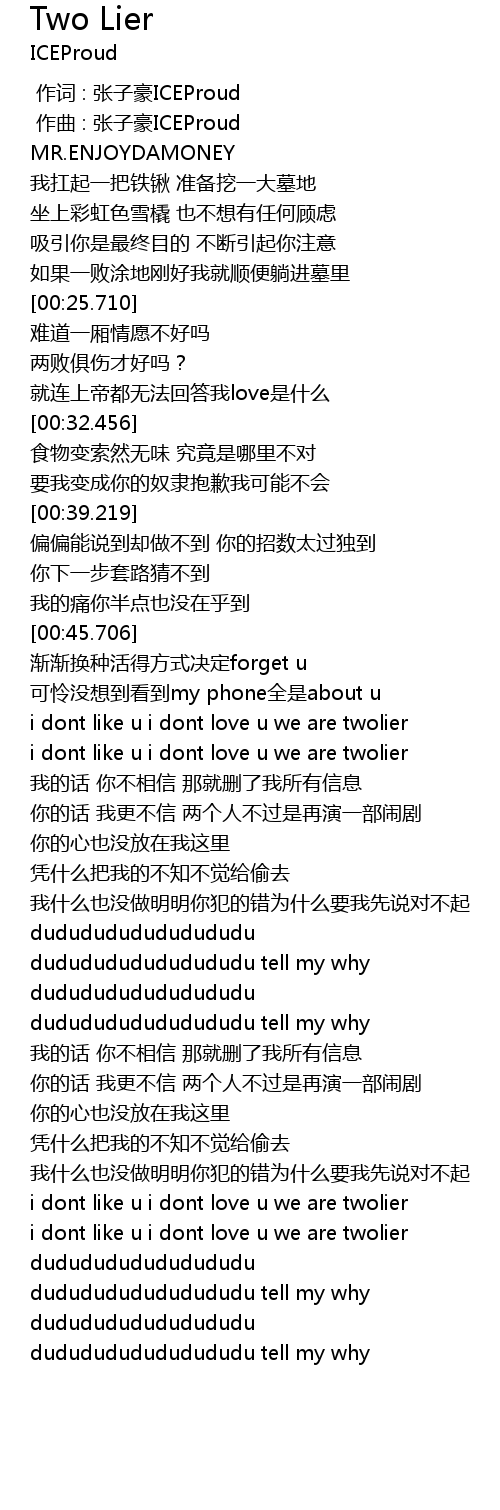 | [02:19.648] | i dont like u i dont love u we are twolier |