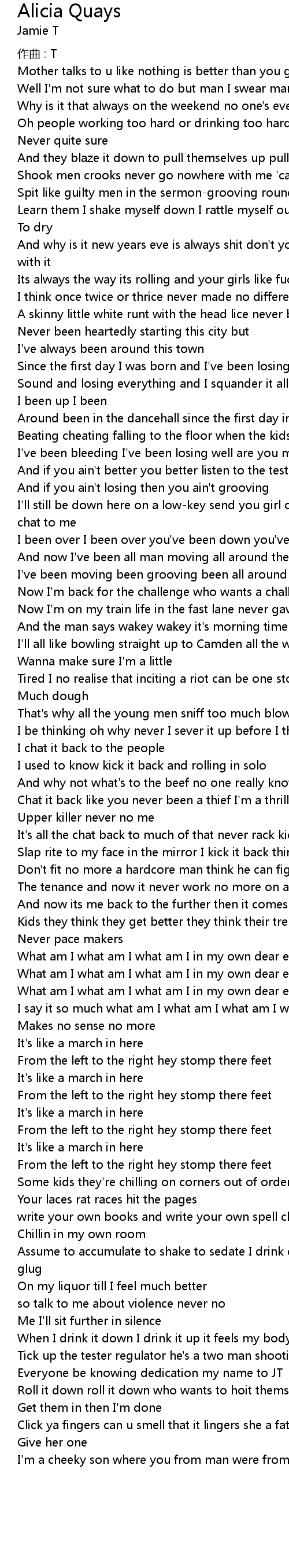 | 歌手 | Jamie T |