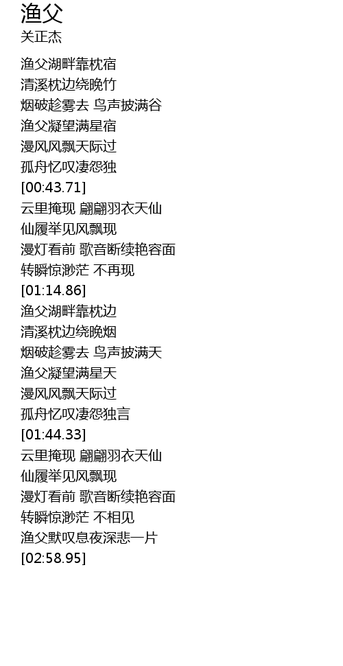 | [00:29.94] | 渔父凝望满星宿 |