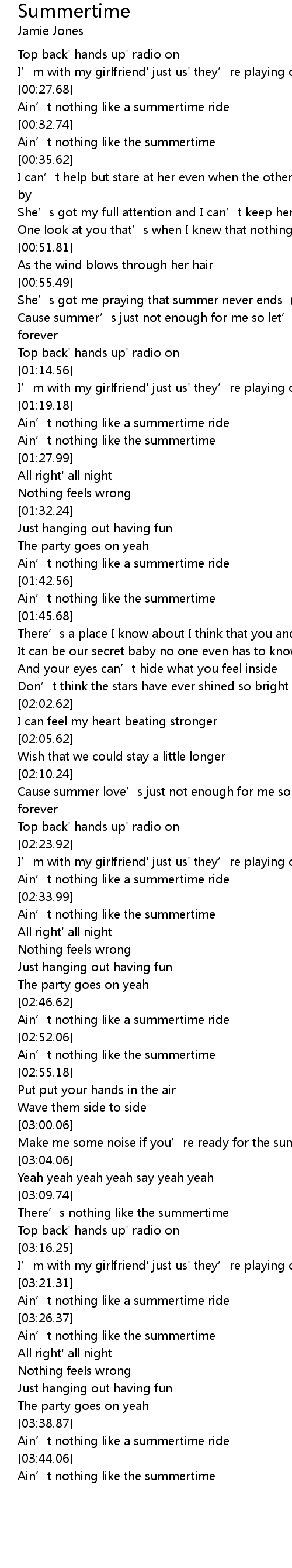 | [03:28.37] | Ain' t nothing like the summertime |