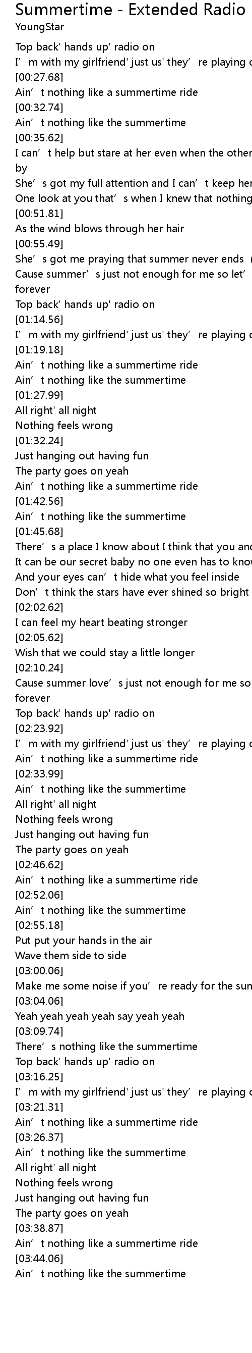 | [03:21.87] | Ain’t nothing like a summertime ride |