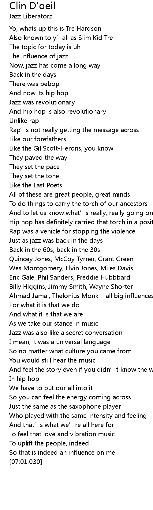| [04:29.605] | The influence of jazz |