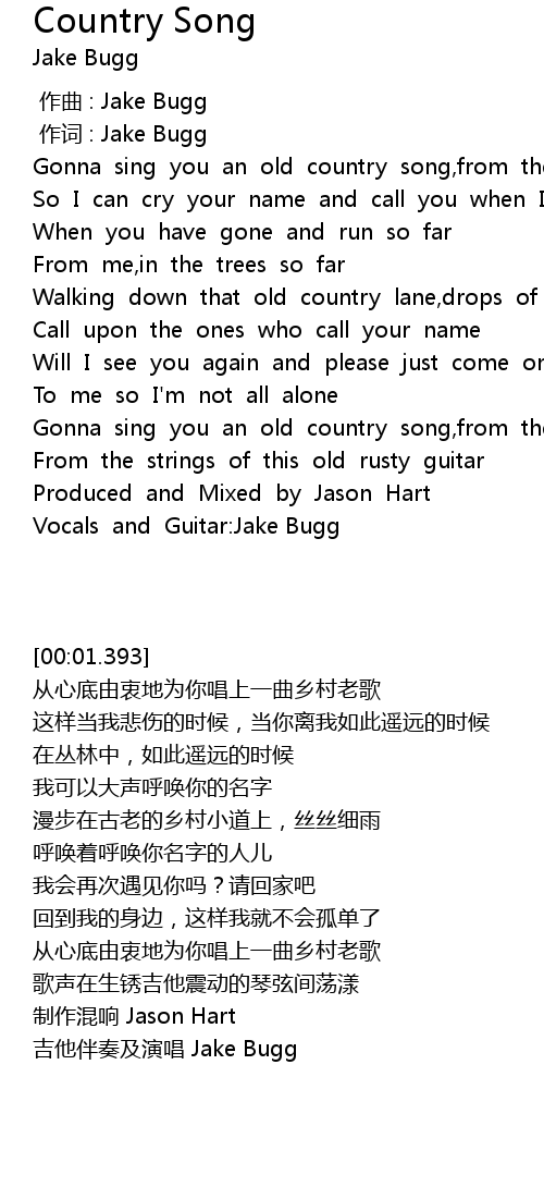 | [01:44.79] | Vocals and Guitar: Jake Bugg |