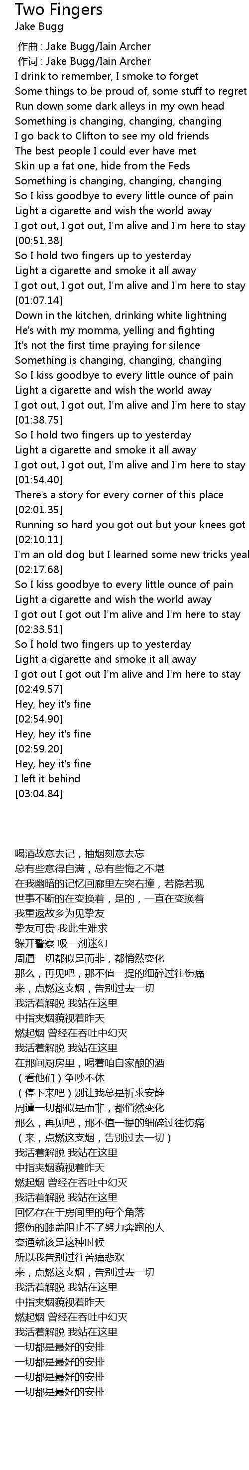 | [00:53.51] | So I hold two fingers up to yesterday |