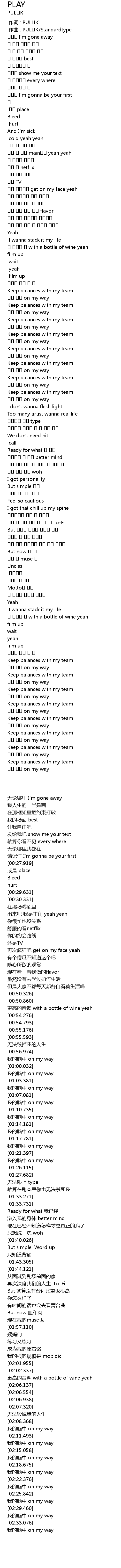 | [00:00.000] | 作词 : PULLIK |