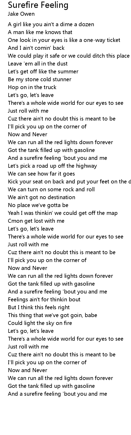 And a surefire feeling 'bout you and me |