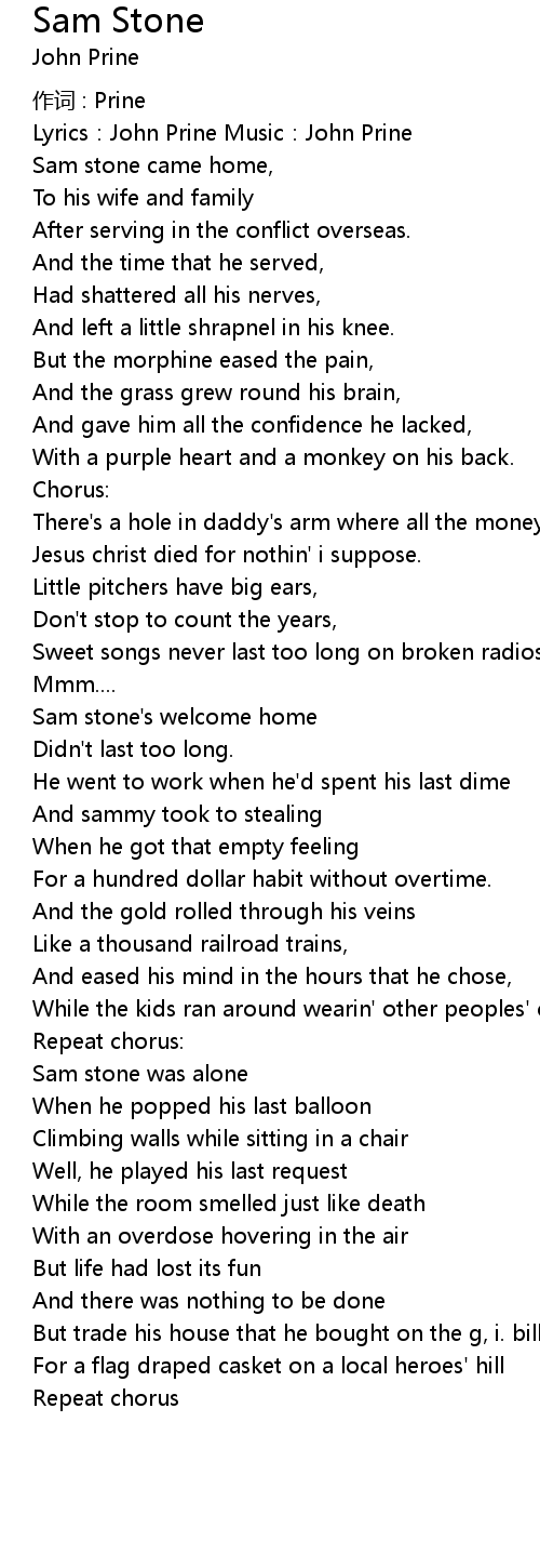 | There' s a hole in daddy' s arm where all the money goes, | |