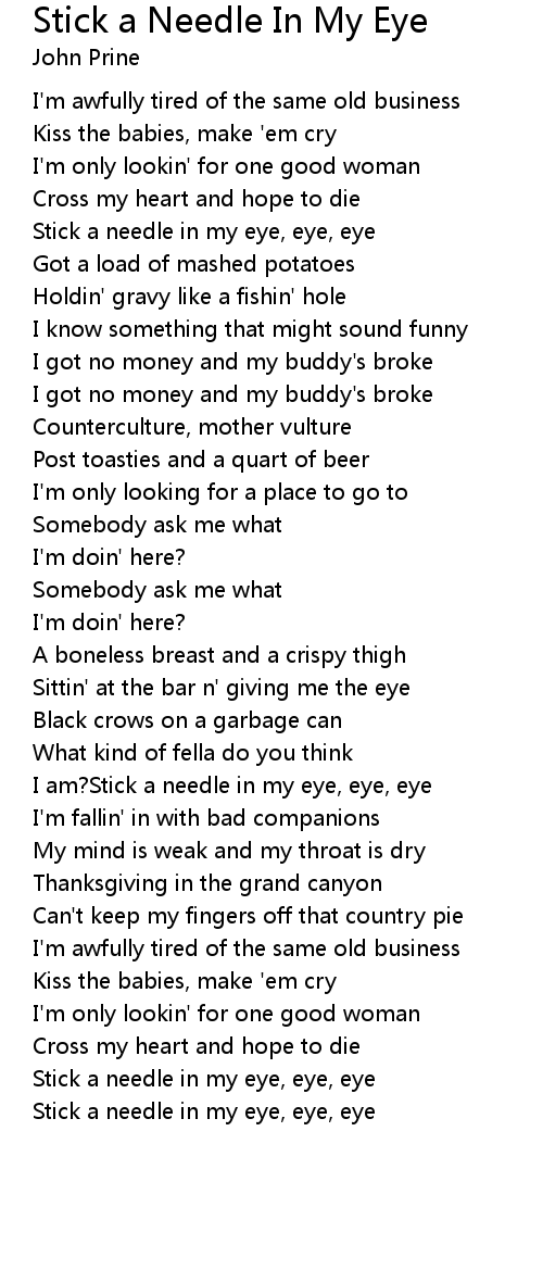 I am?Stick a needle in my eye, eye, eye |