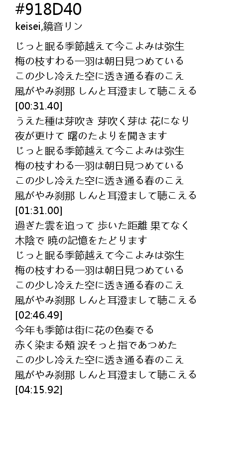 | [04:00.75] | この少し冷えた空に透き通る春のこえ |