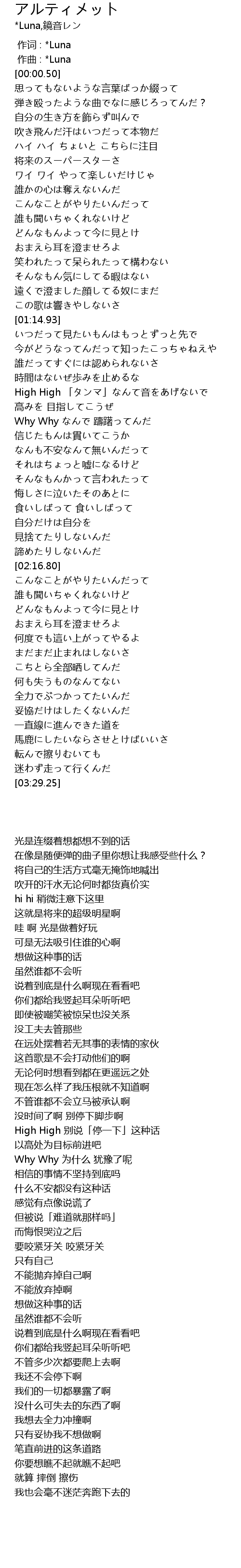 | [01:39.68] | High High 「タンマ」なんて音をあげないで |