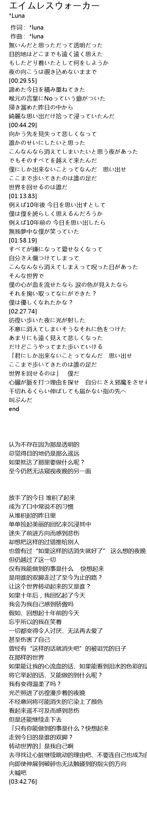 | [00:45.39] | 向かう先を見失って悲しくなって |