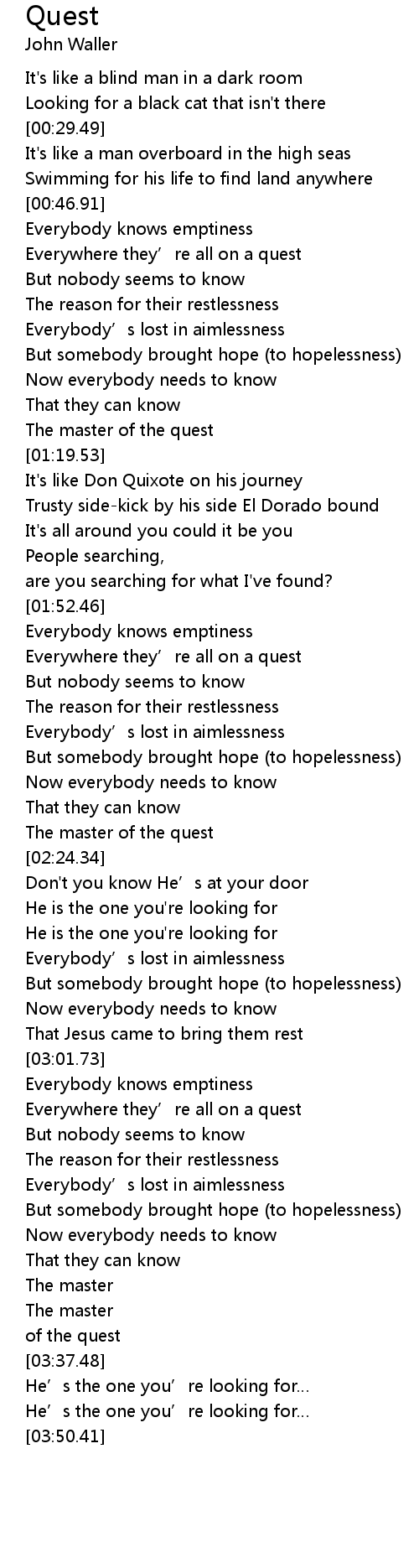 | [01:23.67] | It' s like Don Quixote on his journey |