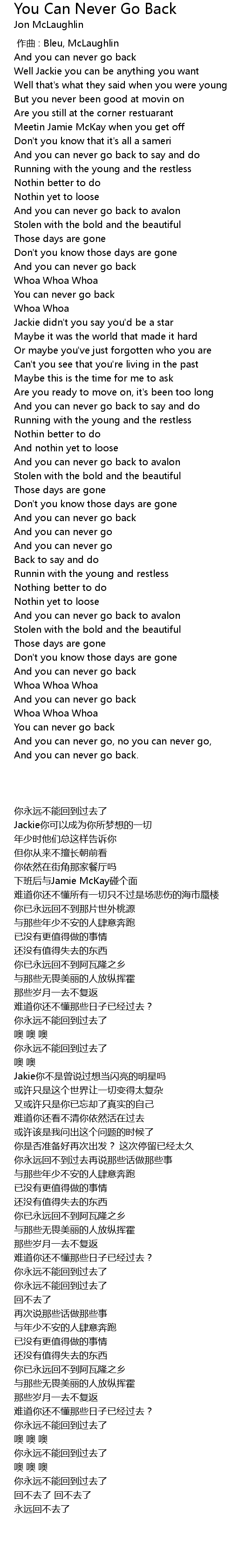 | 歌曲 | You Can Never Go Back |