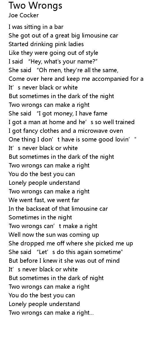 | Two wrongs can' t make a right | |