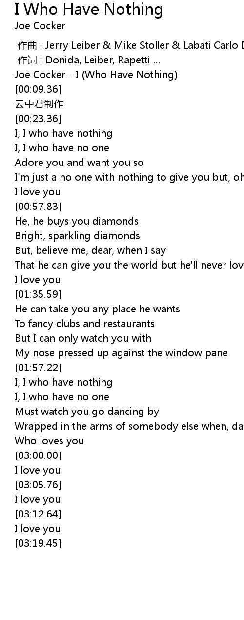 | [00:02.36] | Joe Cocker I Who Have Nothing |