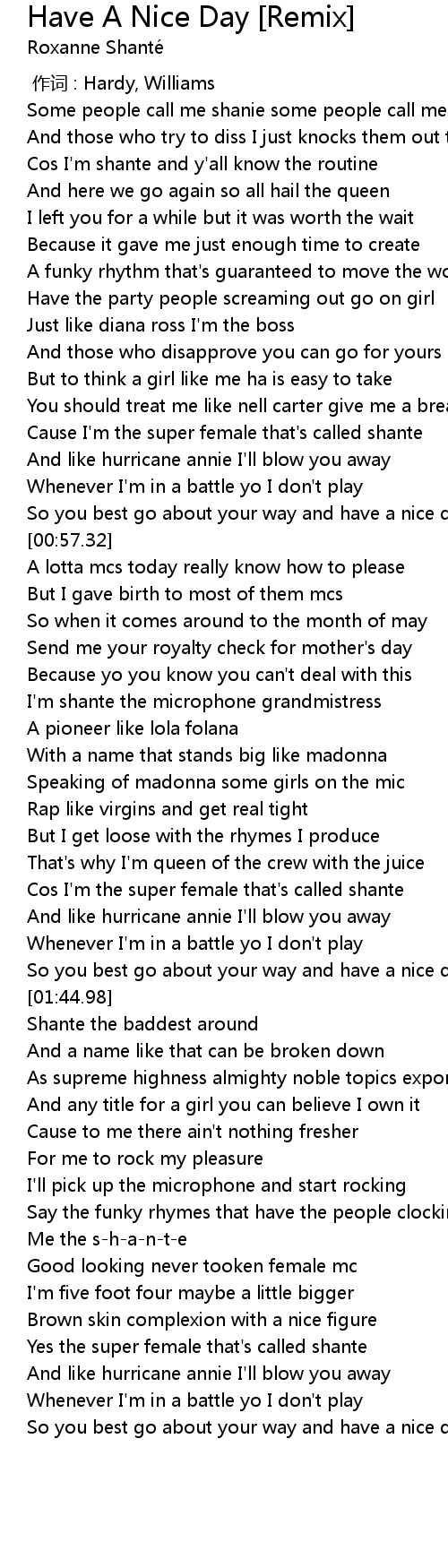 | [00:24.03] | Cos I' m shante and y' all know the routine |