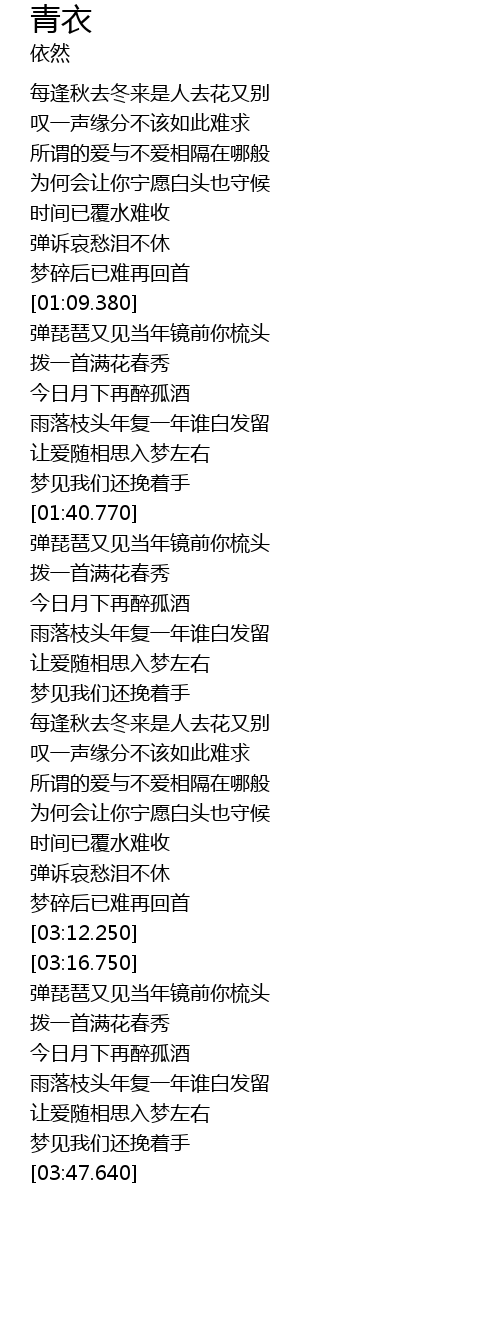 | [03:32.300] | yu luo zhi tou nian fu yi nian shui bai fa liu |