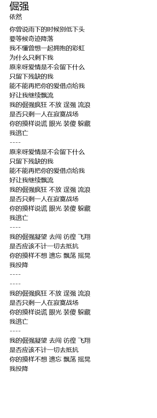 | 我的倔强疯狂 不放 逞强 流浪 | |