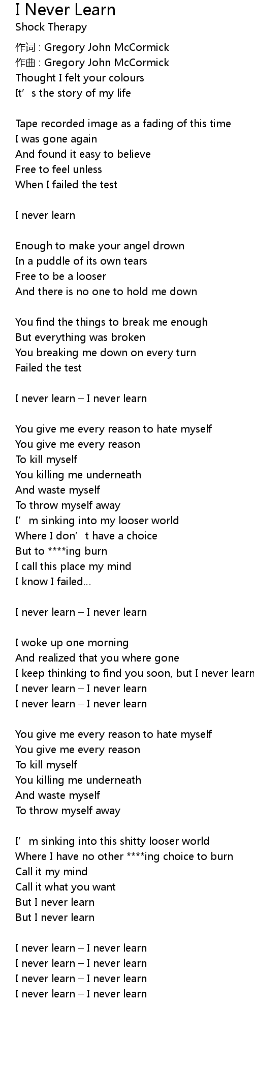 | I never learn | |