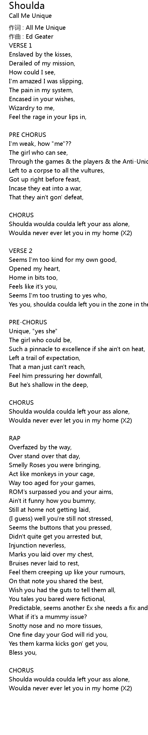| Yes you, shoulda coulda left you in the zone in the hood, | |