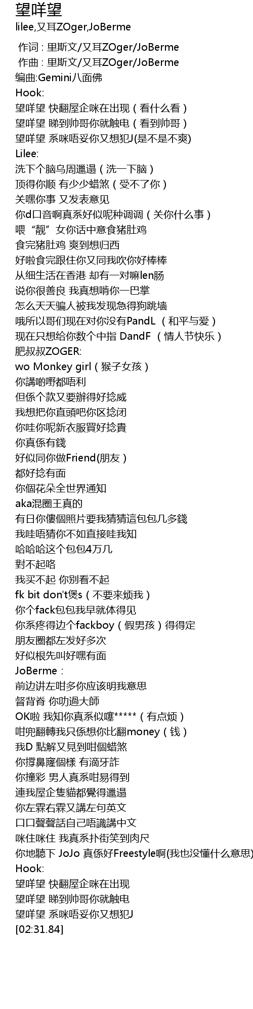 | [02:15.85] | 望咩望 系咪唔妥你又想犯J |