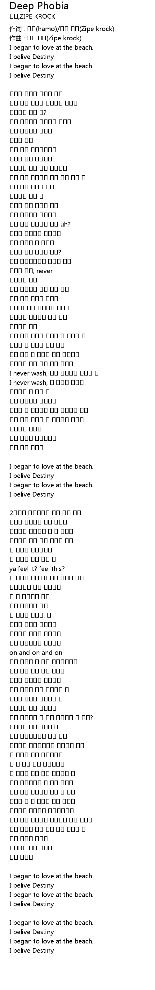 作词 : 하모(hamo)/지프 크락(Zipe krock) |