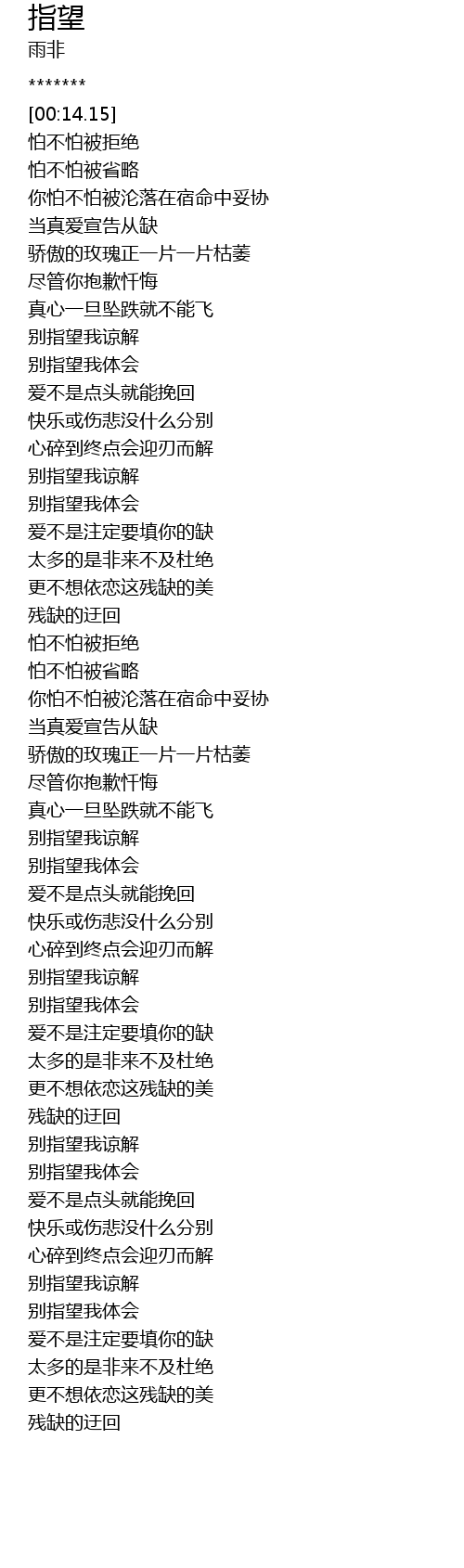 | [00:25.44] | 你怕不怕被沦落在宿命中妥协 |