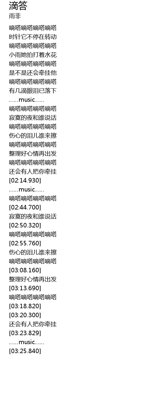 | [01:32.400] | 嘀嗒嘀嗒嘀嗒嘀嗒 |