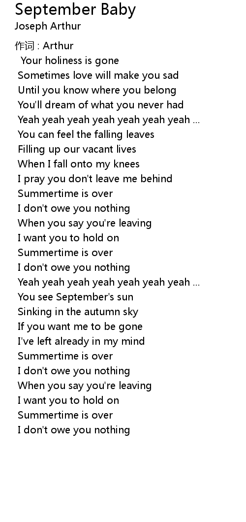 | 歌曲 | September Baby |