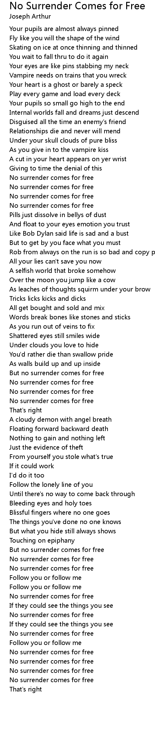 No surrender comes for free |