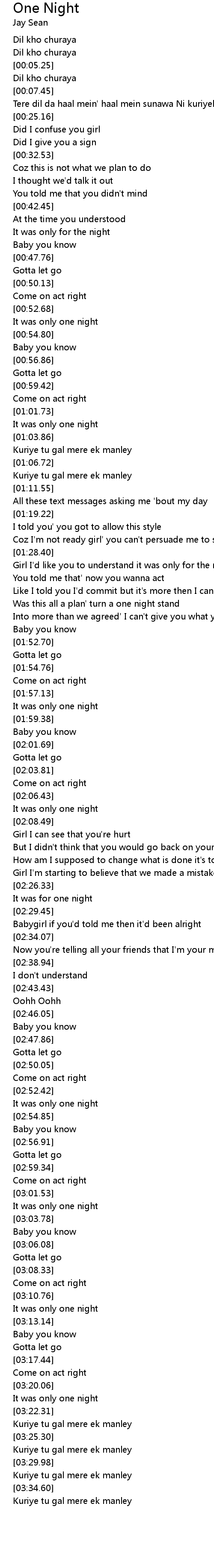 Girl I'd like you to understand it was only for the night |