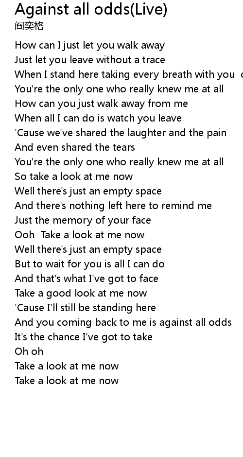 | [00:59.26] | So take a look at me now |