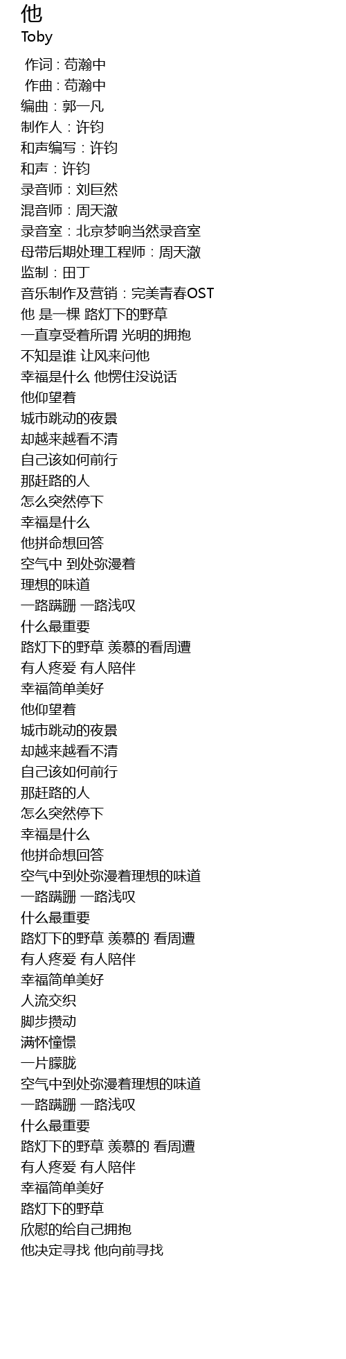 | [00:14.22] | 他 是一棵 路灯下的野草 |