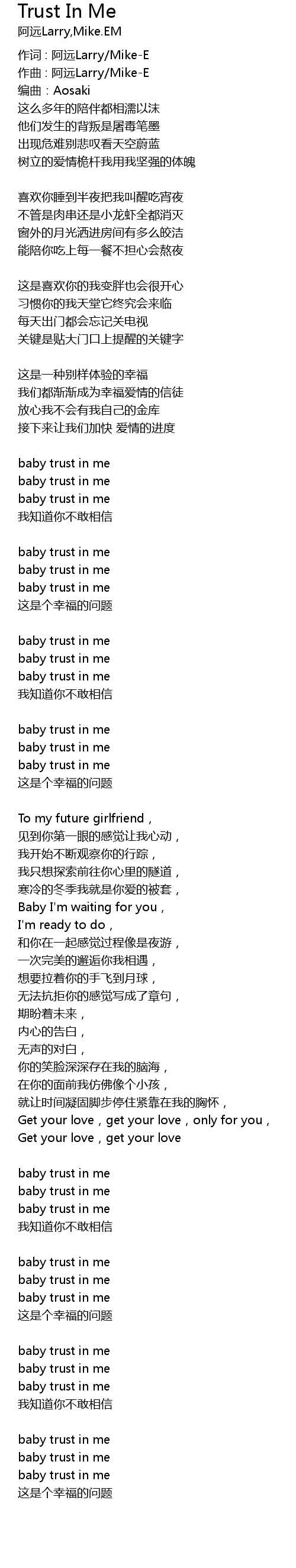 | 作词 : 阿远Larry/Mike-E | |