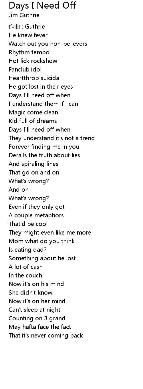 | 歌曲 | Days I Need Off |
