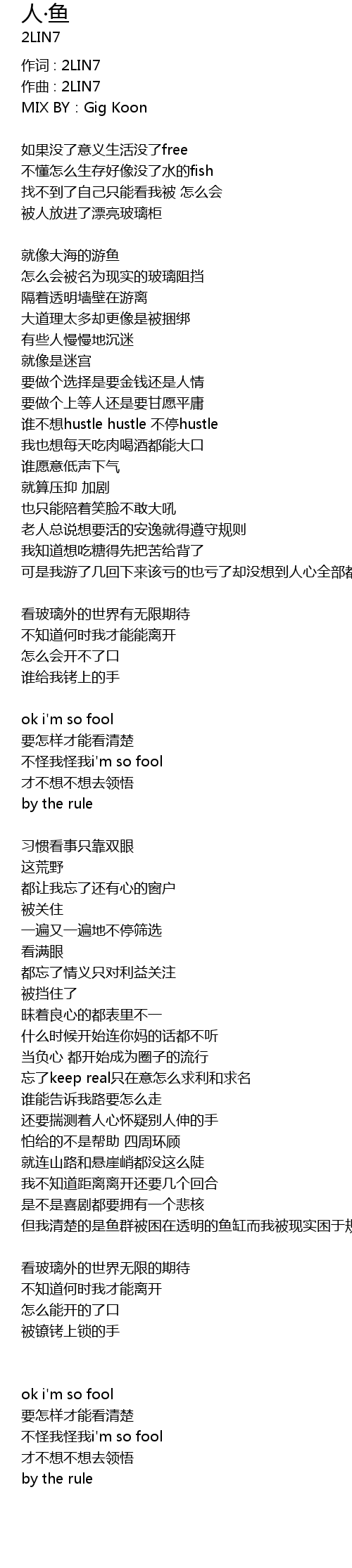 | 作词 : 2LIN7 | |