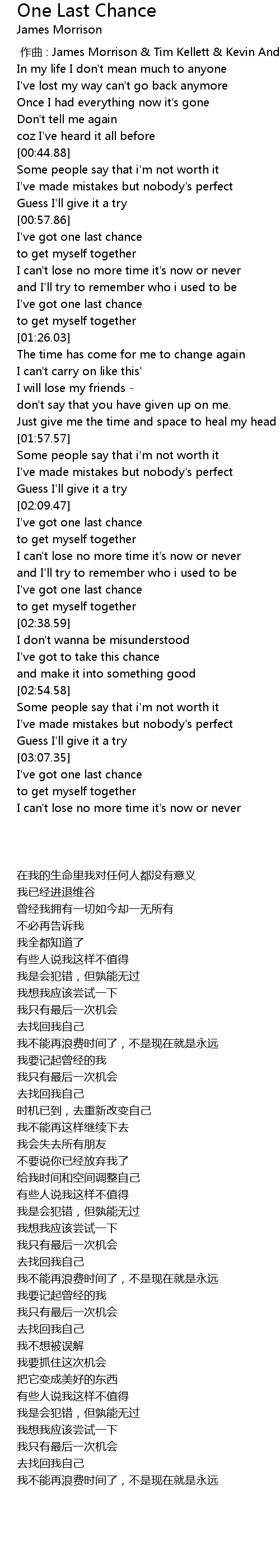 | [00:00.00] | zuò qǔ : James Morrison Tim Kellett Kevin Andrews |