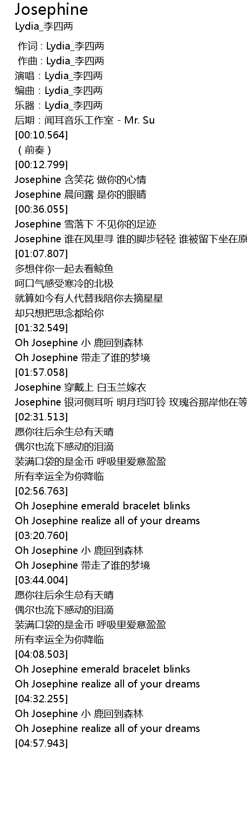 | [01:56.061] | Oh Josephine 带走了谁的梦境 |