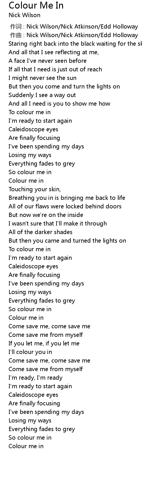 | [00:00.000] | 作词 : Nick Wilson/Nick Atkinson/Edd Holloway |