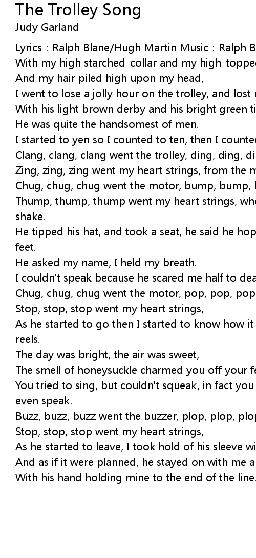 | Clang, clang, clang went the trolley, ding, ding, ding went the bell, | |