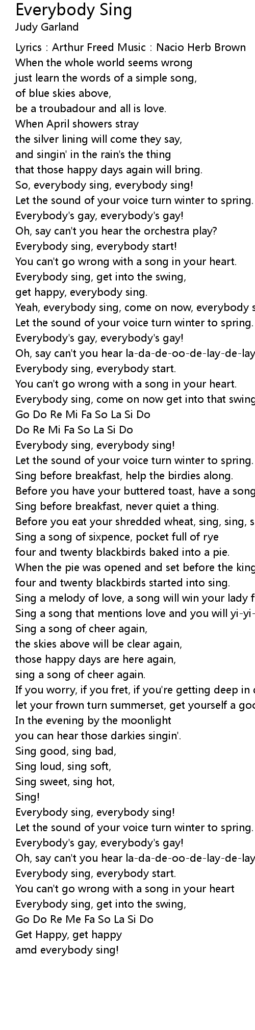 | Everybody sing, come on now get into that swing | |
