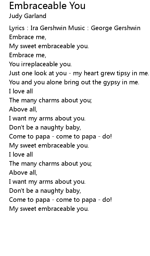 | My sweet embraceable you. | |