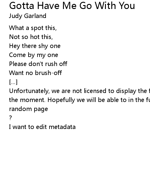 | Unfortunately, we are not licensed to display the full lyrics for this song at the moment. Hopefully we will be able to in the future. Until then, how about a | |