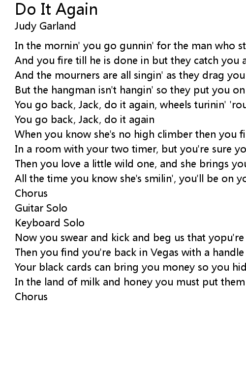You go back, Jack, do it again, wheels turinin' 'round and 'round |