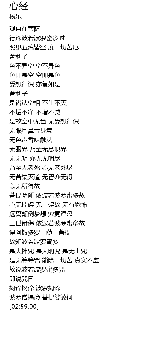 | [02:45.69] | 波罗僧揭谛 菩提娑婆诃 |